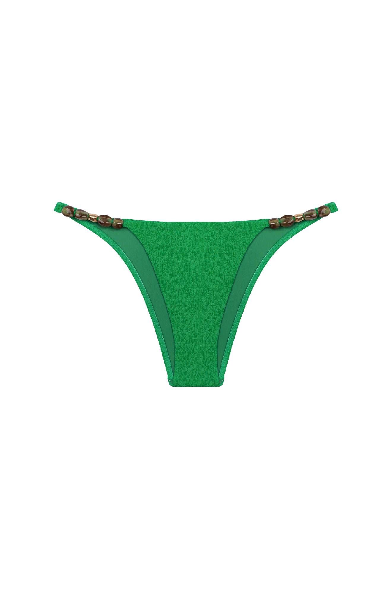 A Calcinha Kiana Brazilian Esmeralda alia uma modelagem impecável à sofisticação de seus acessórios artesanais, para criar um visual fora do lugar comum.