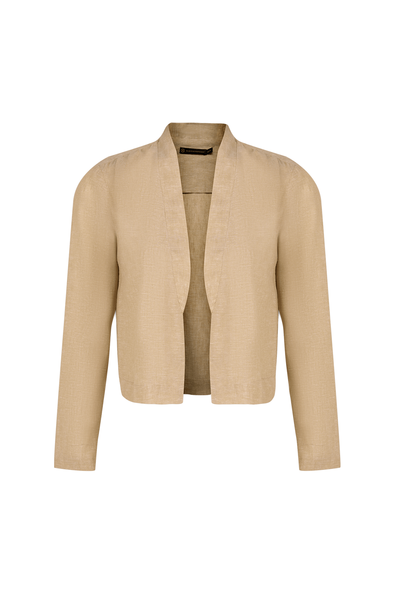 Terceira peça de fit perfeito, o casaco bege Ceci traz leveza e sofisticação para qualquer produção. O modelo curto, com mangas longas e detalhe franzido nos ombros, é uma escolha prática e versátil, perfeita para criar diferentes composições.