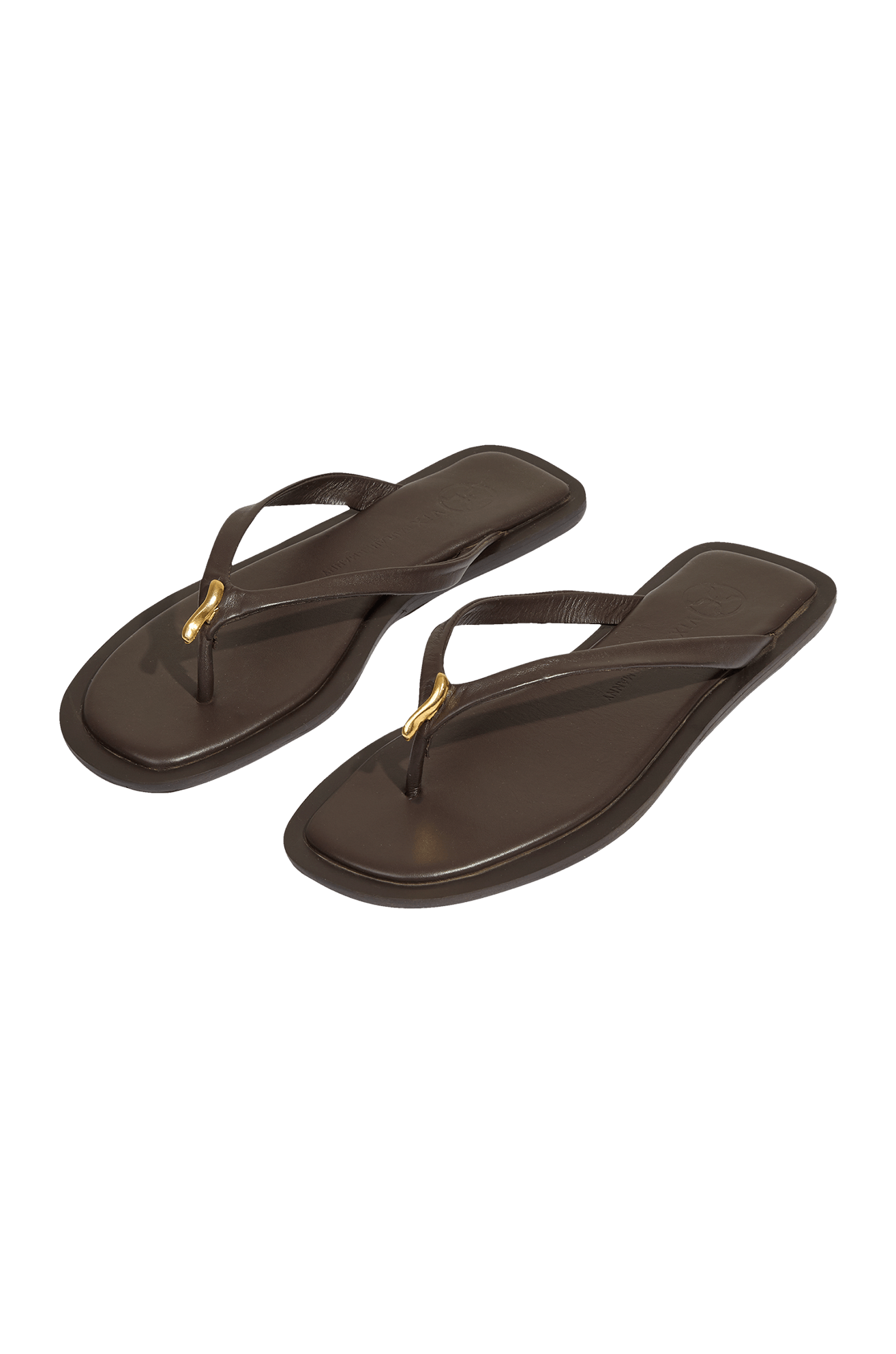 A sandália Ray rasteira é feita toda em couro, com detalhe de metal dourado no cabedal. Uma peça que une sofisticação e leveza, perfeita para complementar produções modernas em diferentes ocasiões.