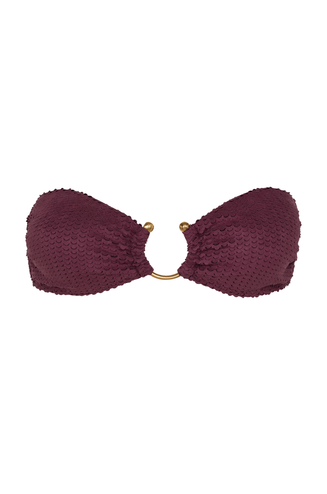 A modelagem Bandeau tem o top de biquíni roxo com alça removível.