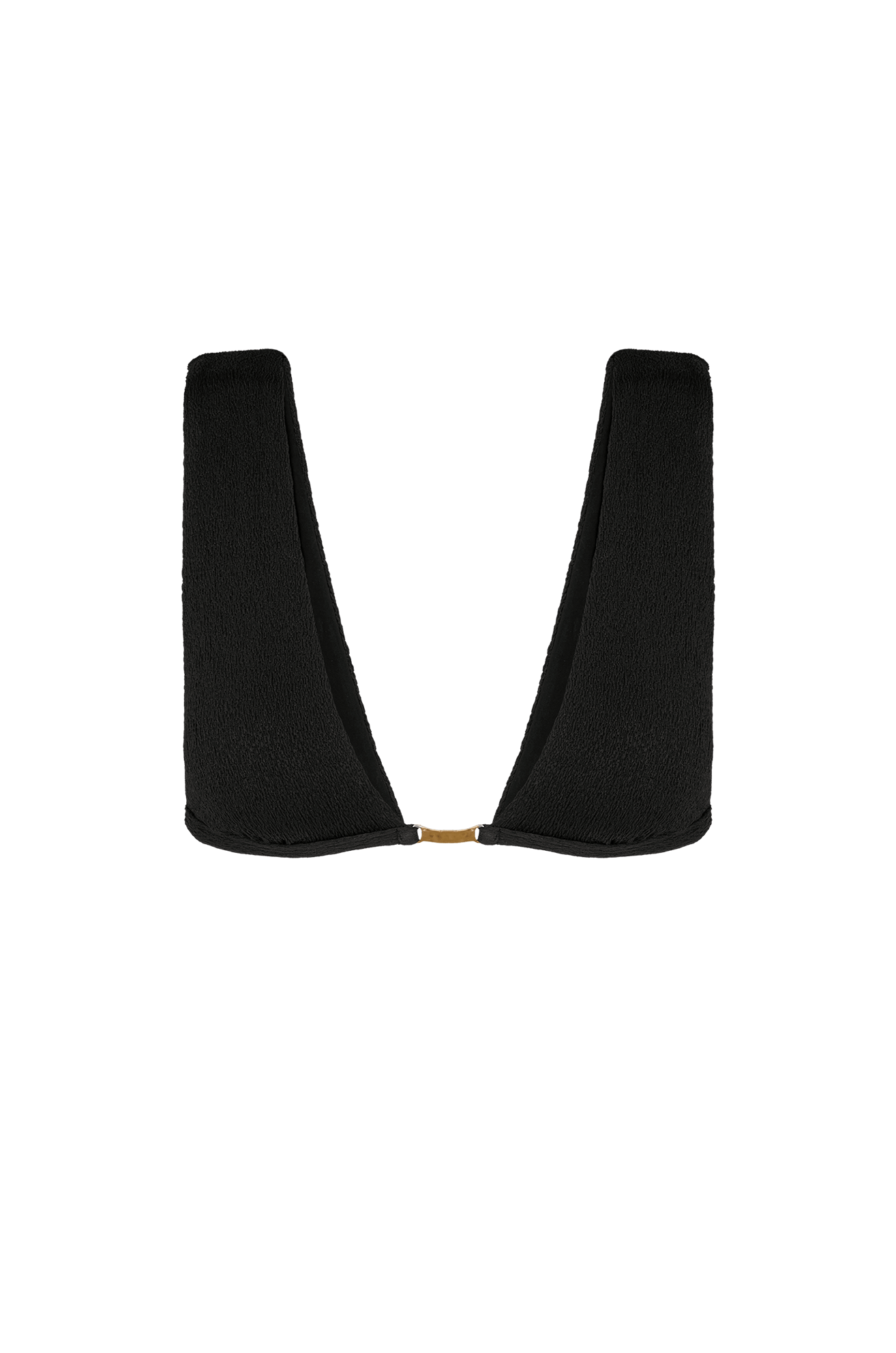 O top preto tem a modelagem Elisa no estilo cropped, com ombros alongados e detalhe de metal dourado ao centro. O cós fixo, fecho nas costas e bojo removível complementam o fit perfeito da peça.
