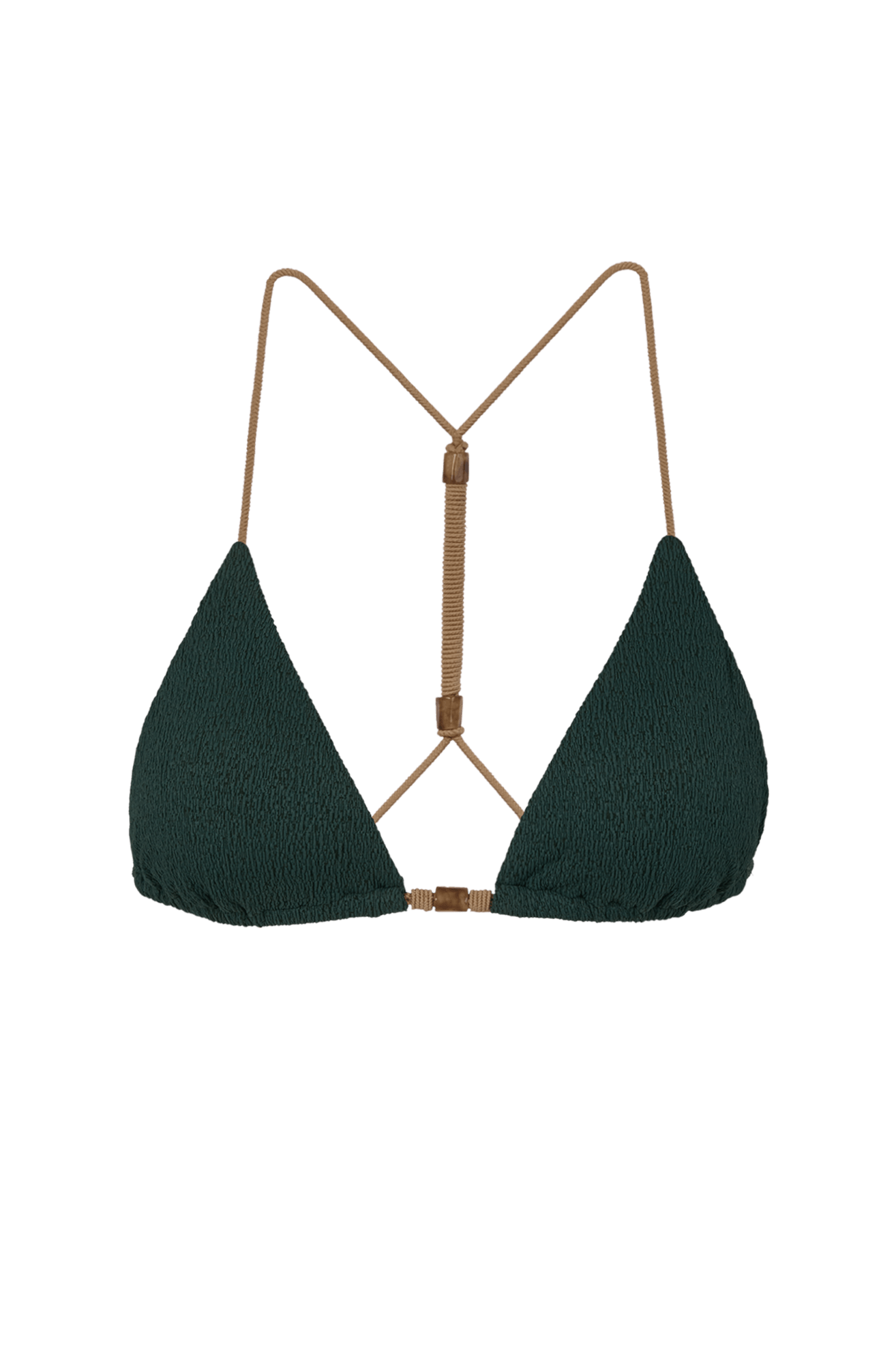 A modelagem Tri Costas tem o top de biquíni verde em shape triângulo ajustável e amarração + detalhe vertical na parte de trás, dando um efeito alongado.