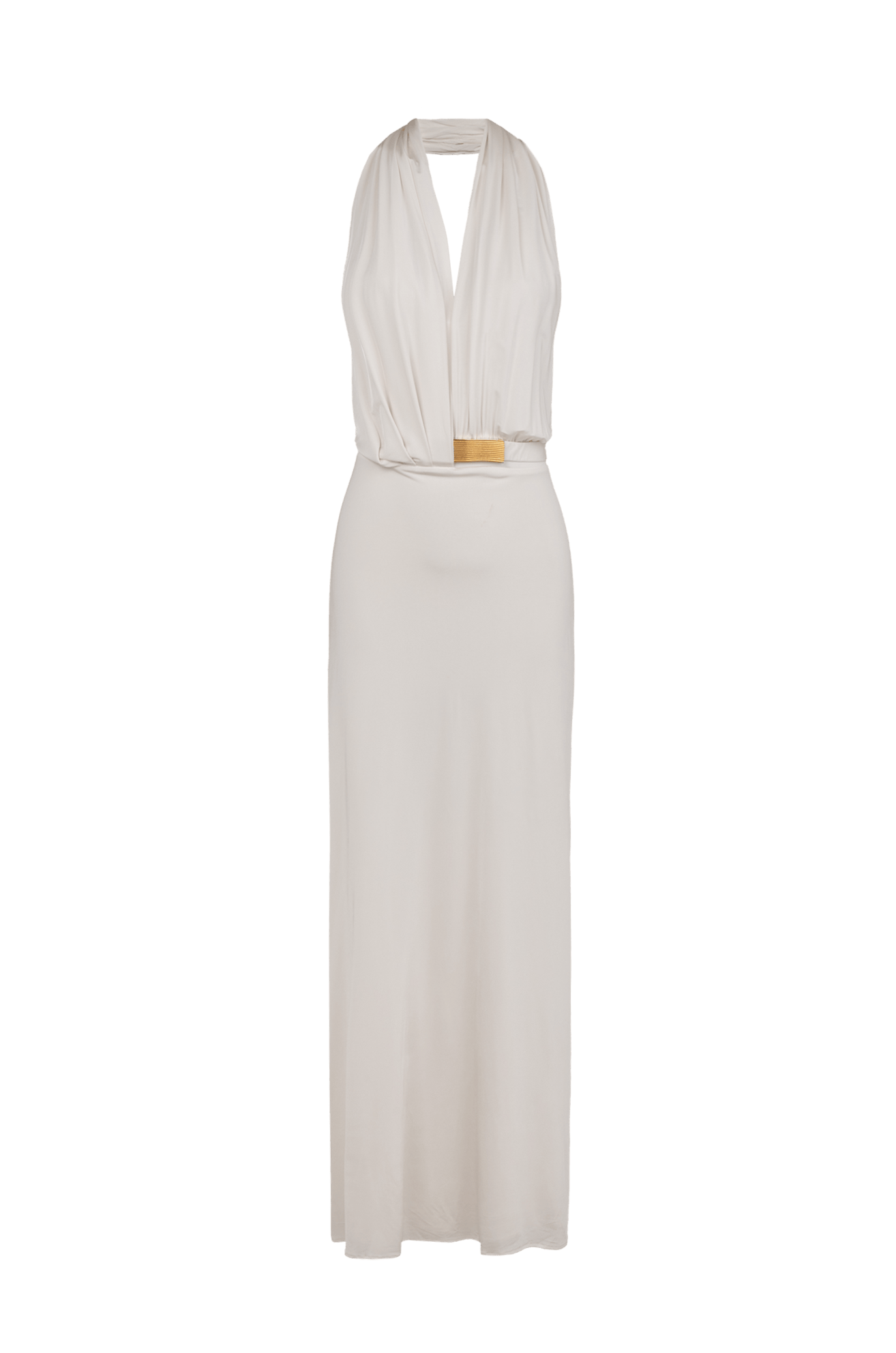 O Vestido Longo Rosana Detalhe Off White é sofisticado, ideal para combinar com saltos ou flats, bijoux e bolsas da coleção.